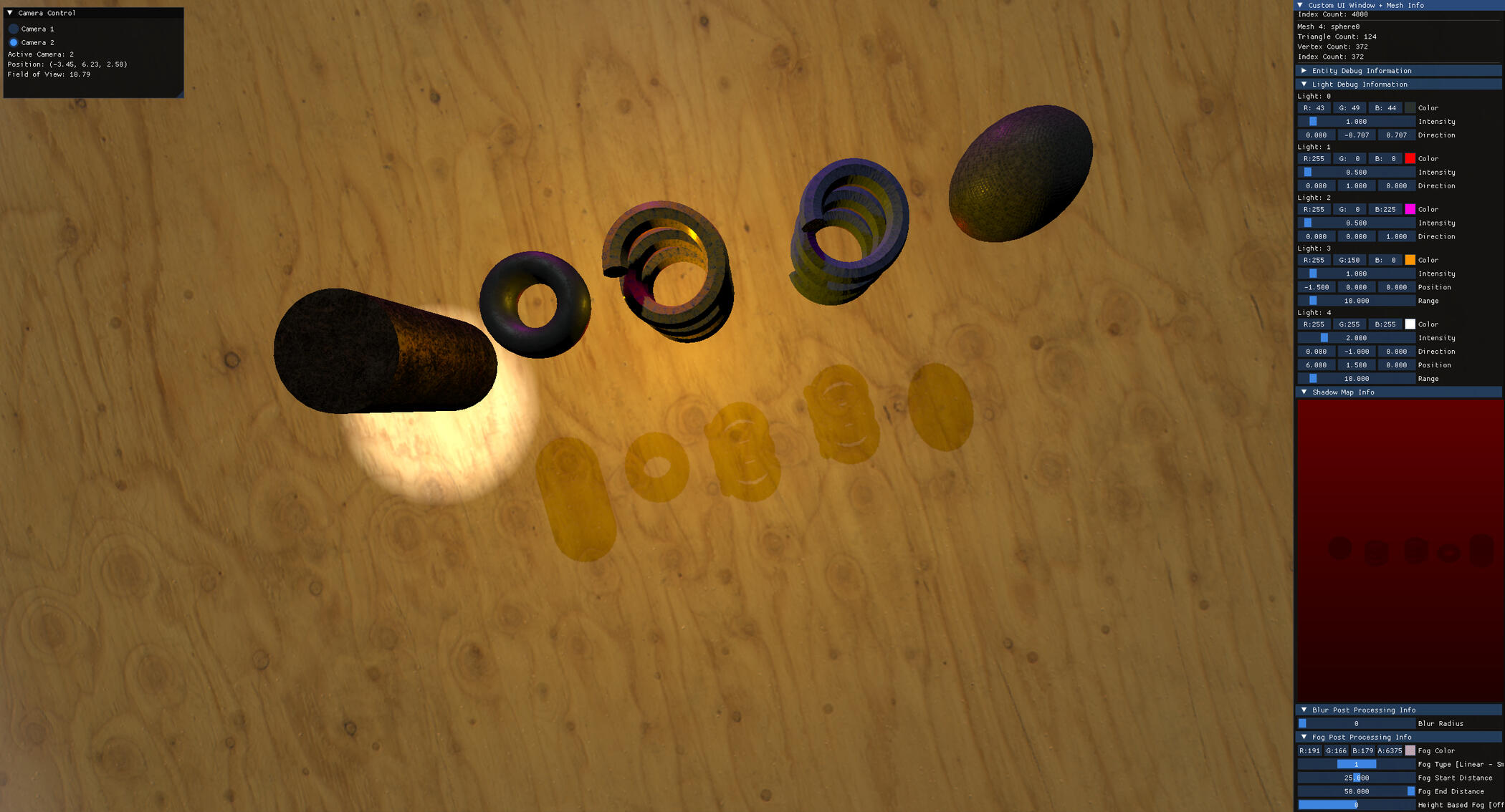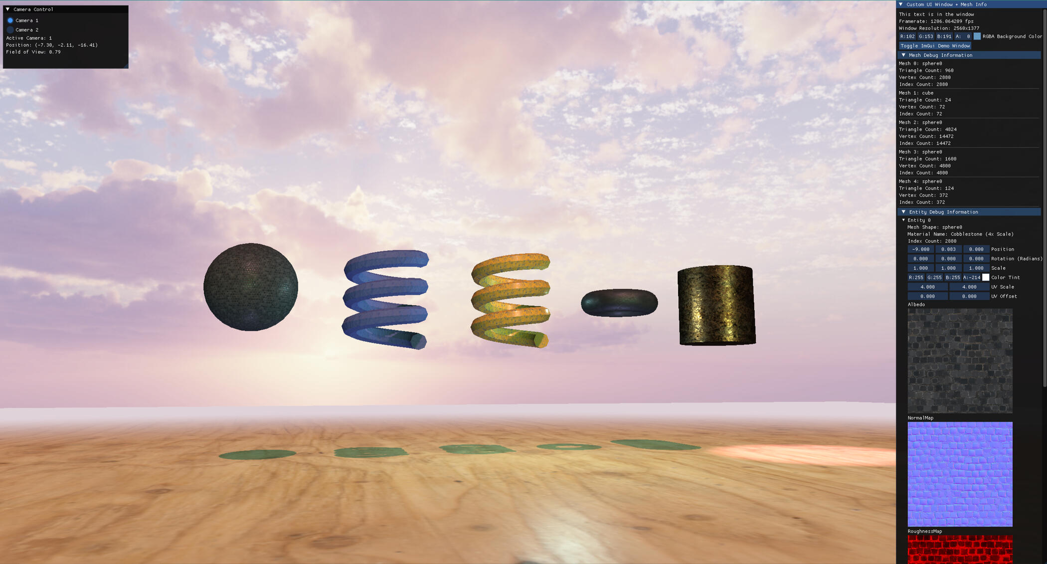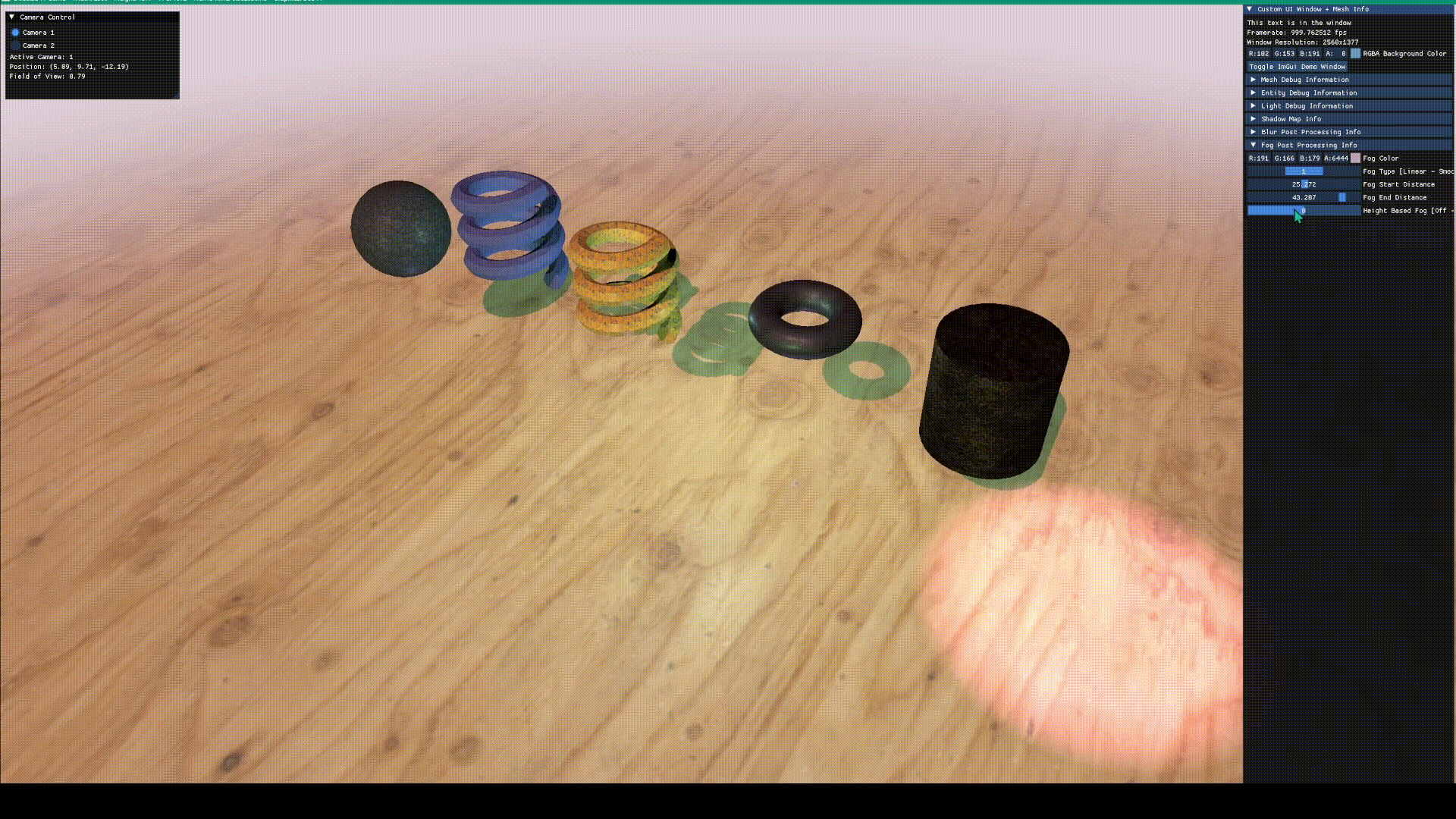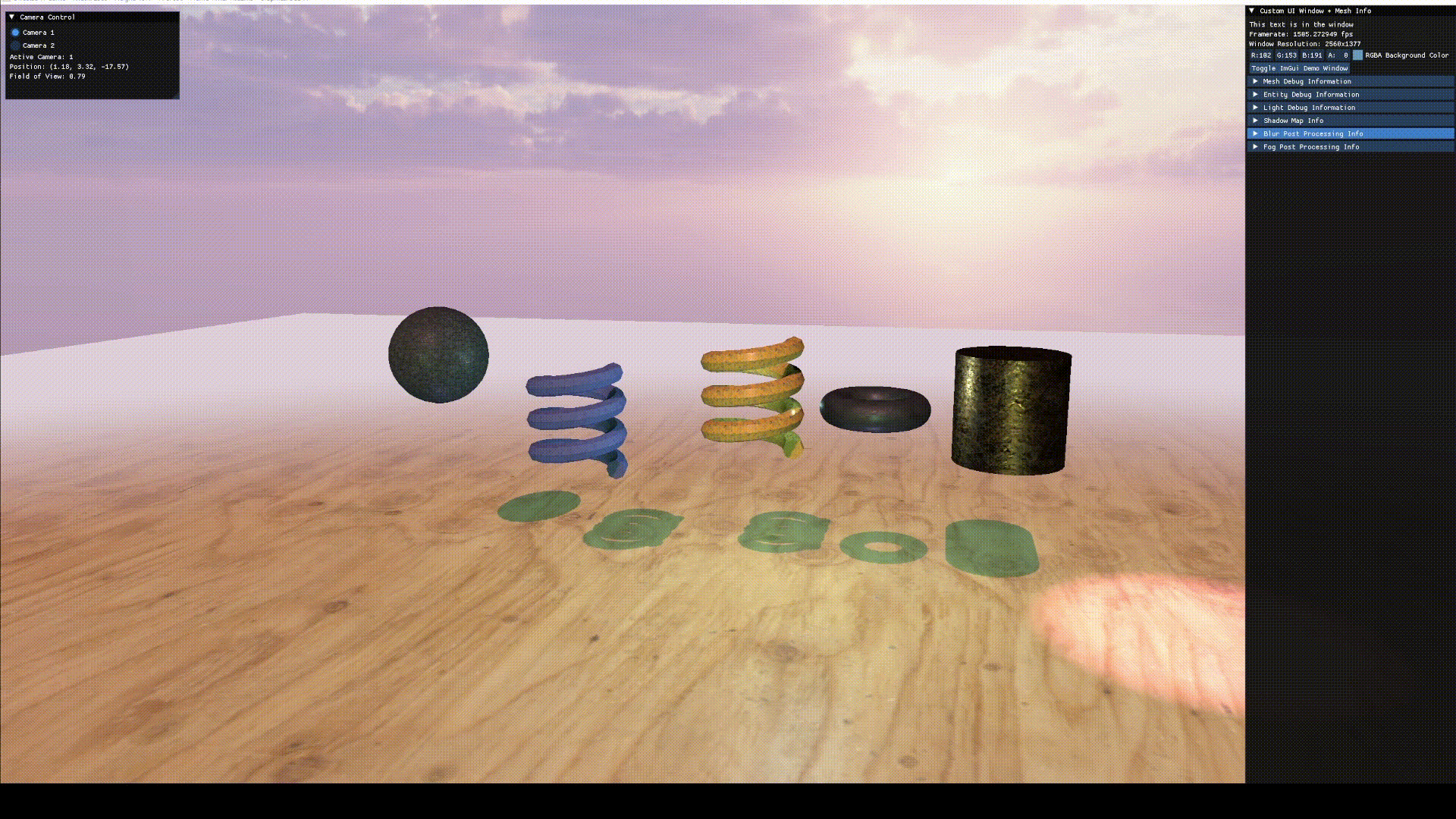 - Integrated Dear ImGui for a runtime debug UI, enabling live inspection and adjustment of scene parameters during development.